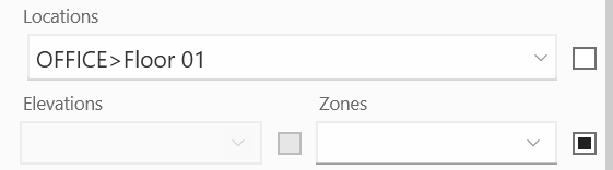 If you clear the selection, then select only Zone A tasks, the task editor will look like this. All Zone B tasks are on Floor 01 so it will be pre-selected under the location pull down but since there is no change, the check box will be unchecked. All the tasks are assigned to Zone B so Zone B will be pre-selected in the pull down but the checkbox will be unchecked. If you need to change something select from the pull downs and the checkbox will be checked automatically for the item you intend to modify.